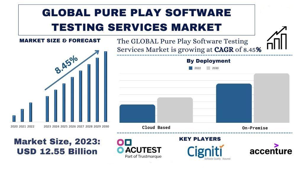 According to the UnivDatos, the surge in demand for pure-play software testing services can be attributed to various factors, such as growing software developments primarily driven by the rising proliferation of artificial intelligence, industries' transformation towards digitalization, technological advancements in the areas of augmented reality, full self-driving, Internet of things, etc. are some of the major factors attributed to the upward trajectory of the global scenario of the Pure Play Software Testing Services and as per their “Pure Play Software Testing Services Market” report, the global Market was valued at USD 12.55 billion in 2023, growing at a CAGR of 8.45% during the forecast period from 2024 - 2032 to reach USD 26.04 billion by 2032.