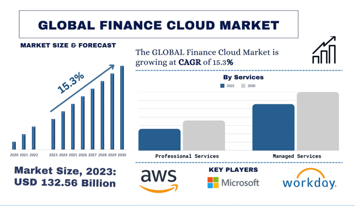 According to the UnivDatos, the surge in demand for Finance Cloud can be attributed to various factors, expanding population, economic growth, urbanization, and growing digitalization of banking and financial services are driving the global scenario of the Finance Cloud and as per their “Finance Cloud Market” report, the global Market was valued at USD 132.56 billion in 2023, growing at a CAGR of 15.30% during the forecast period from 2024 - 2032 to reach USD 477.39 billion by 2032.