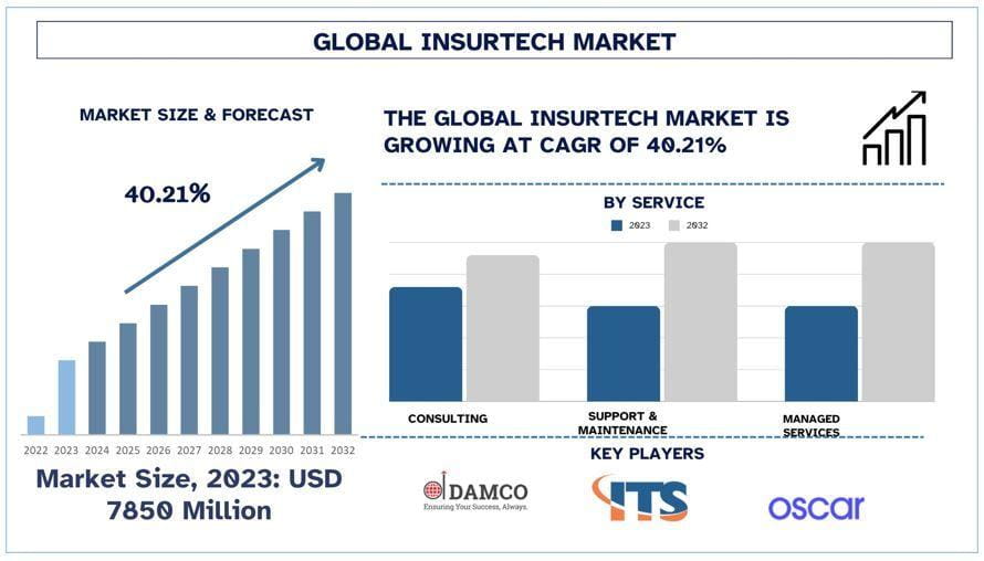 According to the UnivDatos analysis, growing demand for digitalization with Insurtech with increased efficiency will drive the growth scenario of Insurtech and as per their “Global Insurtech Market” report, the global market was valued at USD 7850 million in 2023, growing at a CAGR of 40.21% during the forecast period from 2024 - 2032 to reach USD million by 2032.