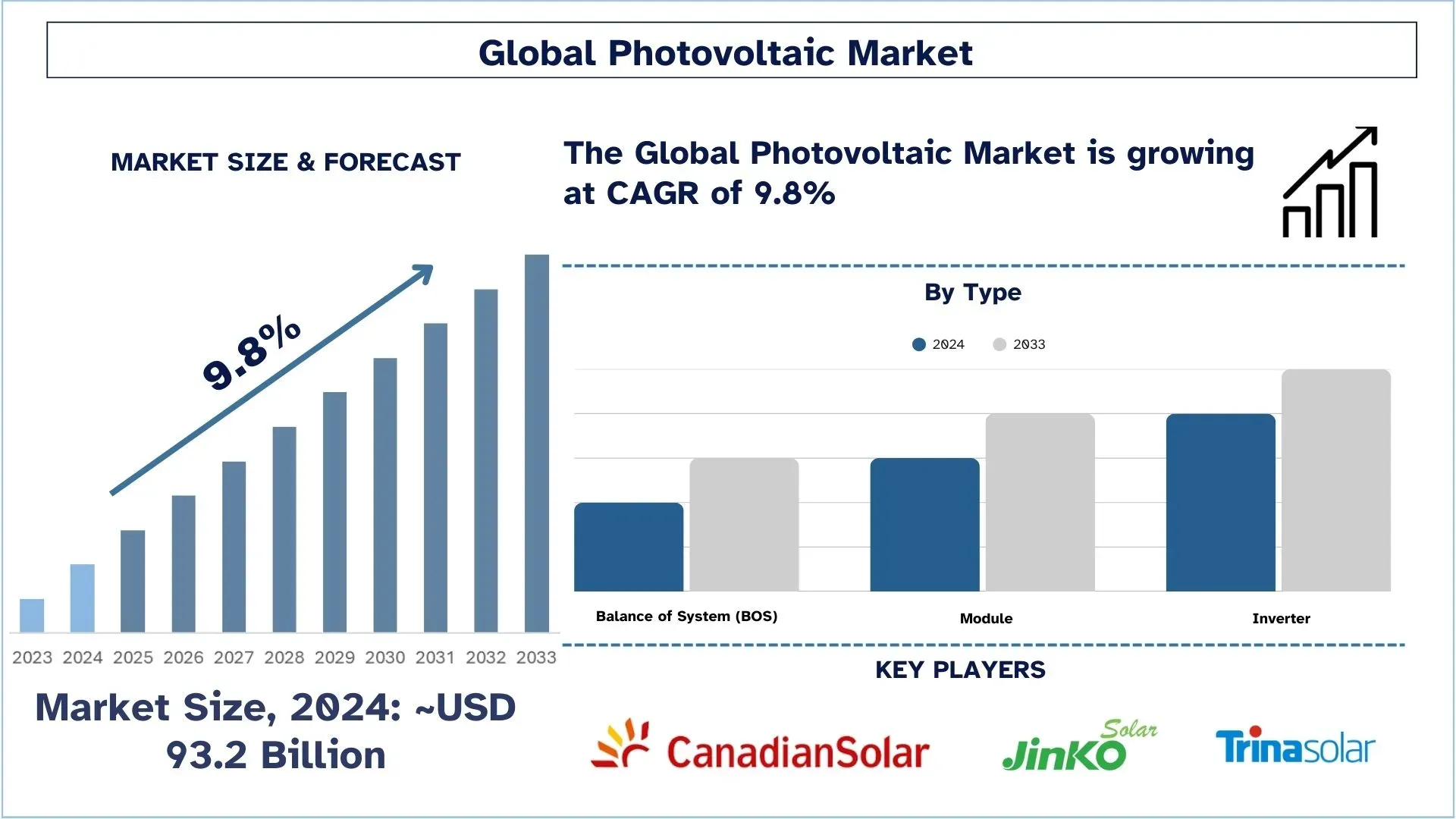 According to a new report by UnivDatos, the Photovoltaic Market is expected to reach USD Billion by 2032, growing at a CAGR of during the forecast period.