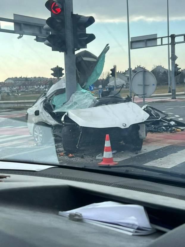 Naime, automobil u kojemu su bili muškarac i dječak se velikom brzinom zabio u semafor i doslovno omotao oko njega. Od siline udara otpala su vrata vozača (51) te je on na pola visio prema van.