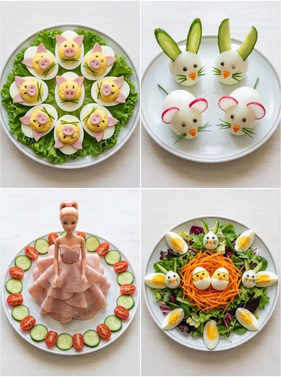 • Turned a few simple ingredients into the cutest little creations—piggy eggs, bunny snacks, and a tiny veggie nest full of chicks Honestly, this made me smile way more than expected!