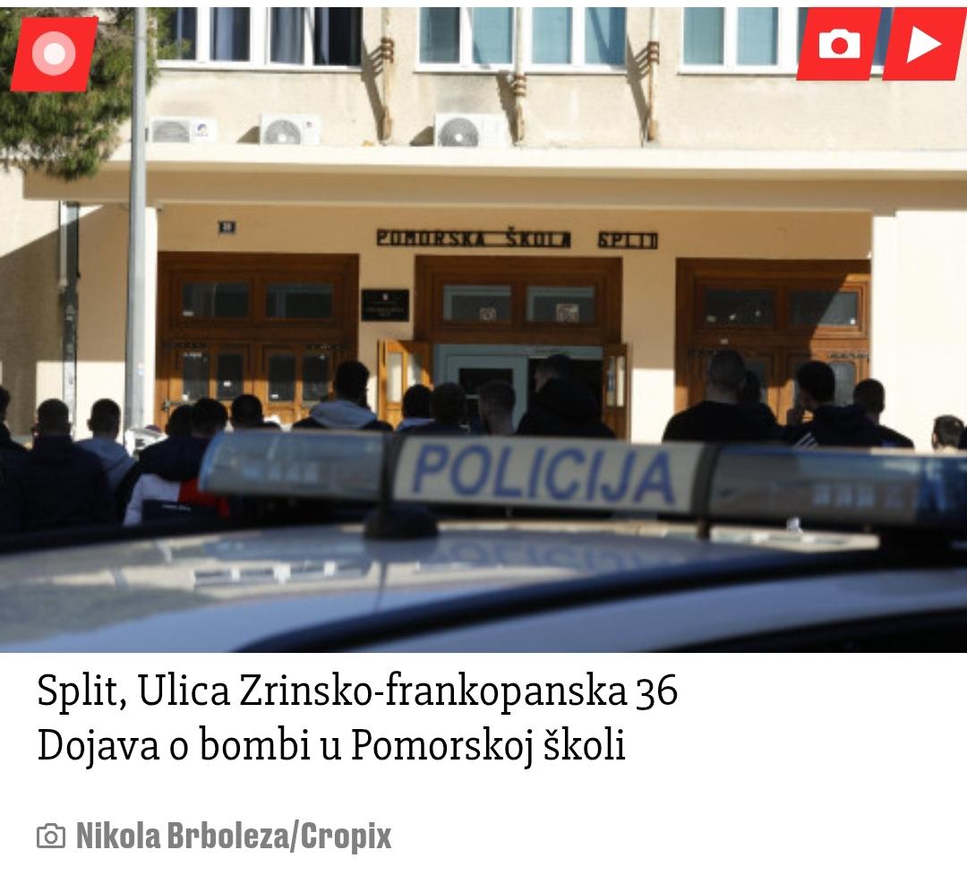 - Nadležne službe brzo i temeljito reagiraju za svaki pojedini slučaj te provode detaljan pregled svih školskih objekata, a učenici i radnici su potpuno sigurni, poručilo je Ministarstvo i dodalo da su današnje dojave o bombama u školama diljem Hrvatske izazvale zabrinutost među učenicima, roditeljima i radnicima škola.