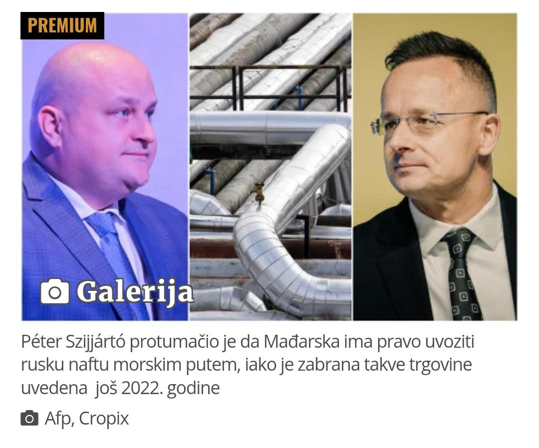 Mađari u panici: Janaf je jeftiniji od Družbe, ali morali bi kupiti skuplju, ‘nerusku‘ naftu. A ta ne nosi profit režimu U jeku mađarskog histeriziranja oko transporta ruske nafte Janafom, i ‘školovanja‘ koje je ministar gospodarstva Ante Šušnjar kroz nekoliko objava na društvenoj mreži X udijelio Péteru Szijjártóu, mađarskom ministru vanjskih poslova, poručivši mu kako neće biti transporta ruske nafte Janafom, i Europska komisija dala je do znanja koji je njezin stav u nastaloj krizi. Sazvala je hitni sastanak Koordinacije za naftu, ali ne zbog mađarske drame nastale uslijed prekida dostave ruske nafte naftovodom Družba, oštećenim u ruskom bombardiranju na zapadu Ukrajine 27. siječnja, već zbog odluke Mađarske i Slovačke o blokadi dostave dizela Ukrajini. https://slobodnadalmacija.hr/vijesti/hrvatska/madari-u-panici-janaf-je-jeftiniji-od-druzbe-ali-morali-bi-kupiti-skuplju-nerusku-naftu-a-ta-ne-nosi-profit-rezimu-1539321